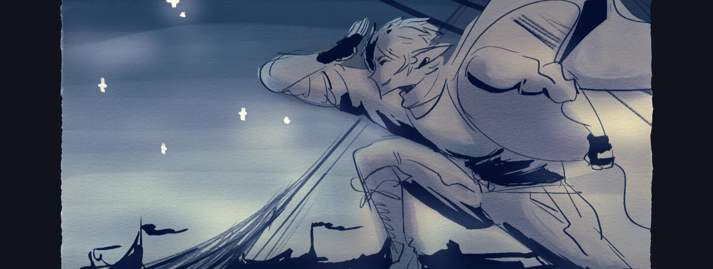 Born to family of fishmongers, his younger years were spent in service providing fish and aquatic items to lesser noble houses.Practiced with army ships, airships, and everything in between, he found his niche and stuck to it, amassing a small crew along the way.Somewhat aloof, dry, unassuming, and incredibly stubborn. What he lacks in manners, he makes up for in loyalty, smarts, and genuine loving care for those around him, even if prickly at first.